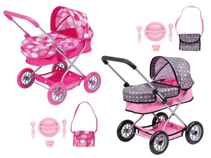 Включая сумку для коляски куклы, корзину для покупок, соску и столовую посуду с тарелкой, вилкой и ложкой