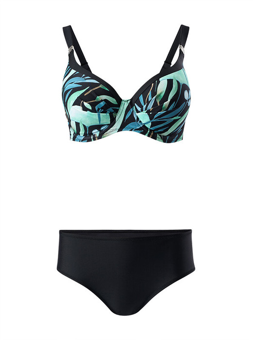 Лиф с формованными чашками на косточках обеспечивает комфортную поддержку и создает эффект округлой груди. Бретели регулируются. Трусы «бикини» со средней линией талии изящно подчеркивают бедра.