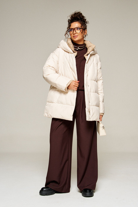 Современный объёмный крой и спущенная линия плеч создают расслабленный актуальный силуэт. А широкий воротник играет роль дизайнерского акцента.