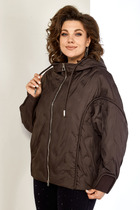 Куртка утепленная, с центральной застежкой на кнопки, втачным воротником, V-образным вырезом горловины. На полочках расположены прорезные карманы с листочками. На линии талии расположена кулиса со шнуром. Толщина синтепона 150г/м2, , изделие рекомендуется до -5 градусов.