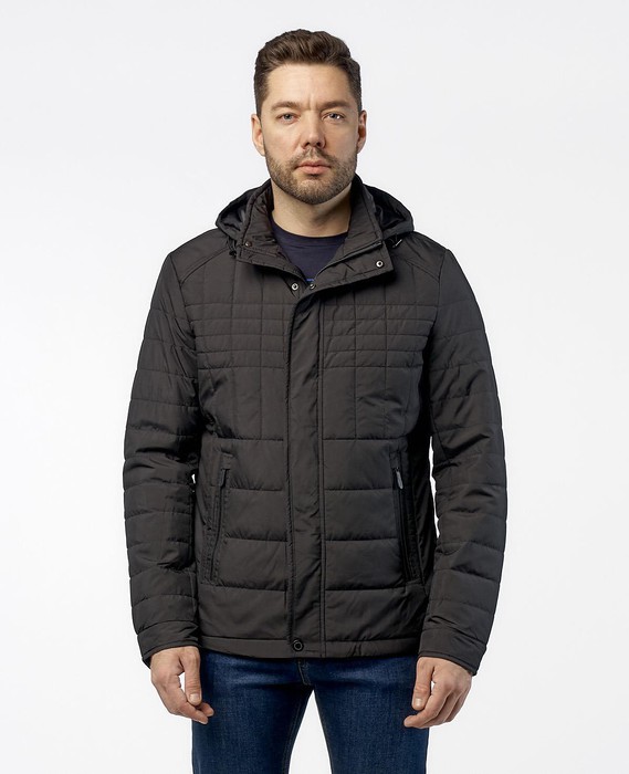 Стильная мужская куртка, два наружных боковых кармана на молниях,  внутренний карман на молнии, отстегивающийся капюшон с регулируемой кулисой, регулируемые по ширине манжеты на рукавах, регулируемая кулиса по низу куртки. Стеганная подкладка надежно удерживает утеплитель, не позволит после стирки сбиться утеплителю в комки. Фабричное производство, качественный пошив изделия.