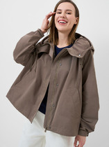 Куртка женская из текстильной ткани (водоотталкивающая) прямого силуэта. По переду расположены декоративные подрезы с прорезными карманами. Спинка состоит из 2-ух частей. На верхней части расположена кокетка и настрочной элемент (возможно изменение элемента-нашивки). Нижняя часть со средним швом. Спущенное плечо, рукав прямой. Вырез горловины оформлен капюшоном с блочками и шнуром. Куртка с планкой, застегивается на молнию и кнопки. По низу изделия расположен шнур с наконечниками.