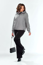 Куртка женская, прямого силуэта с длинным рукавом. Рукав со спущенной линией плеча. Длина рукава может регулироваться отложной цельнокроеной манжетой. Горловина оформлена капюшоном со стойкой. Застежка цельнокроеная на "молнию" Ниже линии талии по переду и спинке горизонтальный подрез. Спереди в подрезе карманы. Вход в карман оформлен потайной "молнией" Отрезная деталь спинки акцентирована вышивкой.