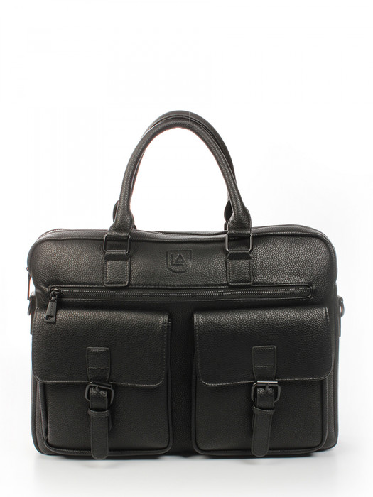 Сумка-портфель выполнена из экокожи. Детали: 2 короткие ручки по 40 см, 1 длинная регулируемая ручка 85 см – 155 см. Внутри изделия: 1 отделение на молнии, 1 карман на молнии, 2 открытых кармана, 1 карман для ноутбука на хлястике с липучкой. Снаружи изделия: 1 карман на молнии спереди, 2 кармана на магнитных кнопках спереди, 1 карман на молнии с оборотной стороны изделия. Брендированная подкладка из полиэстера. Металлическая фурнитура черного цвета. В комплекте фирменный пыльник.