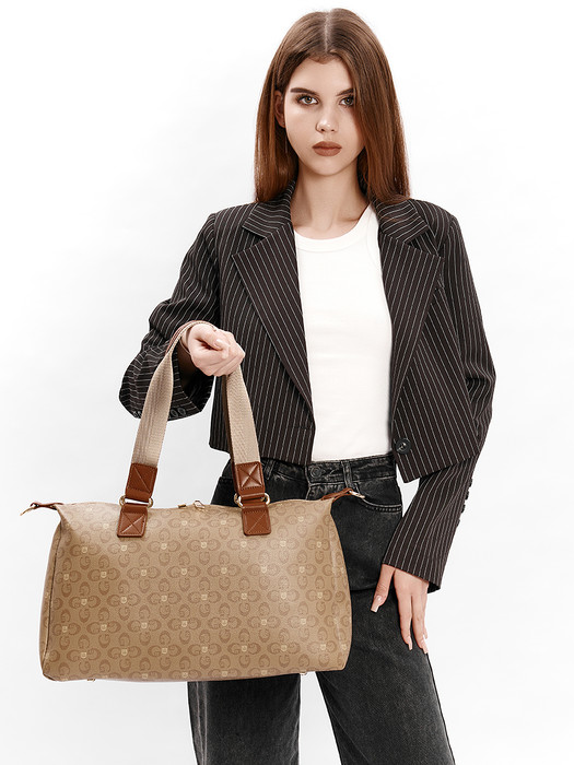Сумка выполнена из экокожи канва. Детали: 2 ручки по 60см., 1 длинный регулируемый ремень на карабинах. Внутри изделия: 1 отделение на молнии, 1 карман на молнии, 1 карман открытый. Снаружи изделия: 1 карман на молнии с оборотной стороны изделия. Брендированная подкладка из хлопка. Металлическая брендированная фурнитура золотистого цвета.