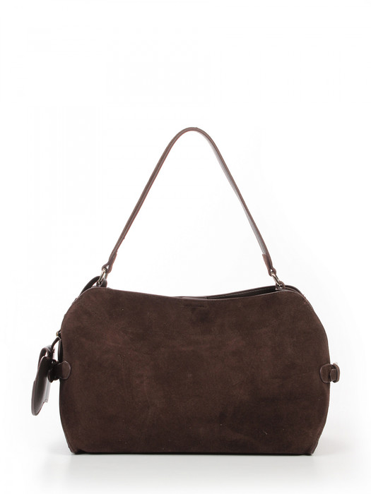 Сумка женская выполнена из натуральной замши. Детали: 1 ручка 45 см, 1 регулируемая ручка от 110 см до 135 см. Каркас сумки: жесткий. Застежка: магнитная кнопка. Внутри изделия: 3 отделения, 2 открытых, 1 на молнии, 1 карман на молнии, 1 открытый карман. Подкладка из хлопка и кожи. Металлическая брендированная фурнитура серебристого цвета. В комплекте фирменный пыльник для хранения сумки.