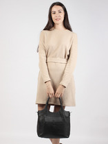 Сумка женская выполнена из экокожи. Детали: 2 ручки на плечо по 57 см. Внутри изделия: 2 отделения разделены перегородкой в виде кармана для документов на молнии, 1 открытый карман, 1 карман для мобильного телефона и 1 карман на молнии. Снаружи изделия: 1 карман на оборотной стороне изделия на молнии. Брендированная подкладка из хлопка. Металлическая брендированная фурнитура серебристого цвета. В комплекте фирменный пыльник.