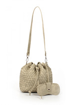 Сумка плетеная выполнена из экокожи. Детали: 1 ручка 70 см, 1 регулируемая ручка от 110 см до 125 см. Сумка имеет 1 отделение, закрываемое на стяжку. Металлическая брендированная фурнитура серебристого цвета. В комплекте фирменный пыльник для хранения сумки, чехол для очков, косметичка. Внутри косметички: 1 отделение на молнии, 1 карман на молнии, 1 открытый карман. Особенности косметички: брендированная подкладка из хлопка, брендированная фурнитура серебристого цвета.