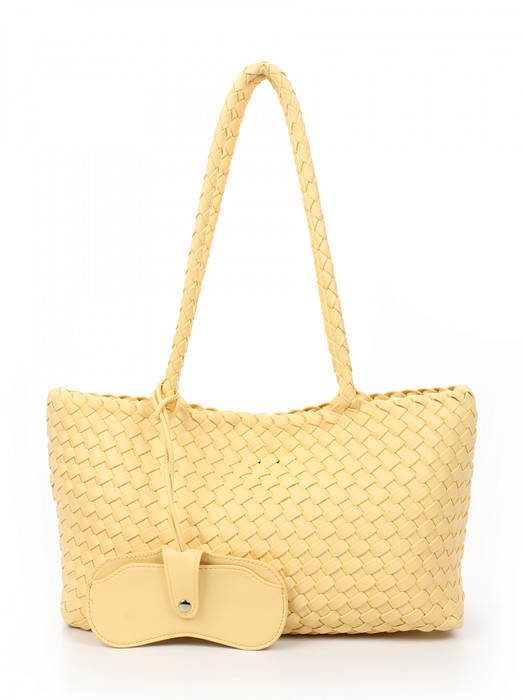 Сумка плетеная выполнена из экокожи. Детали: 2 ручки 60 см. Сумка имеет 1 отделение, закрываемое на магнит. В комплекте фирменный пыльник для хранения сумки, чехол для очков, косметичка. Внутри косметички: 1 отделение на молнии, 1 карман на молнии, 1 открытый карман. Особенности косметички: брендированная подкладка из хлопка, брендированная фурнитура серебристого цвета.