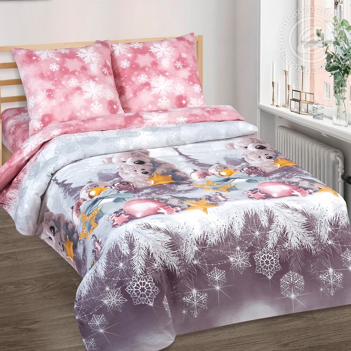 Ласковый плюшевый мишка станет верным хранителем детских снов и секретов. Он поможет исполнить все заветные желания ребенка в преддверии новогодних праздников. Нежная цветовая гамма будет настраивать на спокойный и приятный отдых. Комплект выполнен из качественного 100% хлопка. Износоустойчивый материал будет служить длительное время. Полутороспальная модель идеально подойдет для детской кроватки. Изделие имеет стильную современную упаковку.