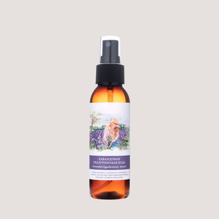 В состав нашей «Лавандовой» воды входит 2 вида гиалуроновой кислоты с сертификатами ECOCERT и гидролат лаванды, собранной уже на нашей Лавандовой ферме.