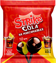 Strike Cola на максималках с двойным вкусом – колы с лимоном и колы – максимально раскрывает вкус любимого напитка в новом формате карамели на палочке.