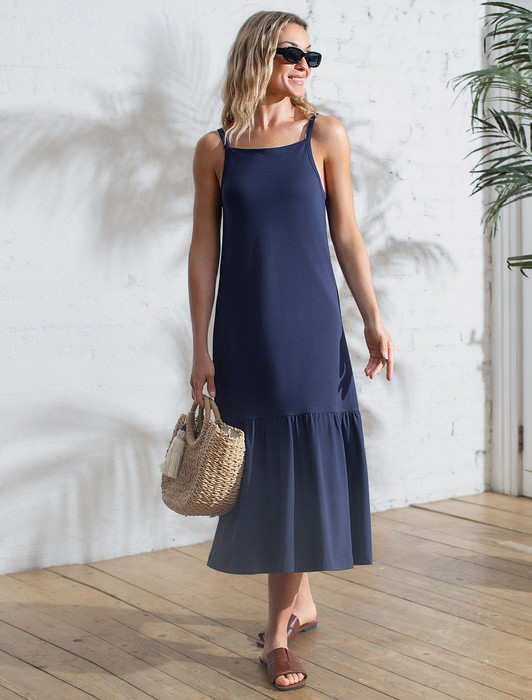 Летнее платье миди из гладкого эластичного хлопка
