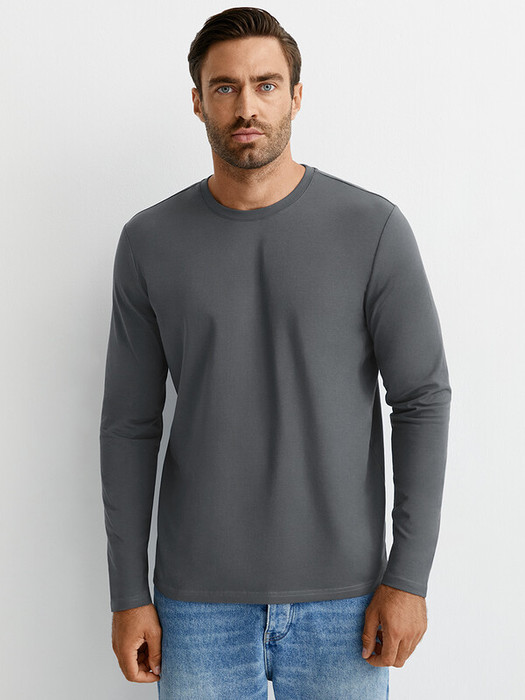 Мужской лонгслив прямого кроя с длинными рукавами и круглым вырезом горловины. Изготовлен из тактильно приятного хлопка с эластаном, который отлично пропускает воздух, приятно ощущается на теле и подходит даже для самой чувствительной кожи.