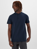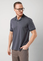 Лонгслив-поло из однотонного хлопкового полотна с добавлением лайкры. Втачной рукав на манжете, воротник на отрезной стойке с застежкой на три пуговицы.