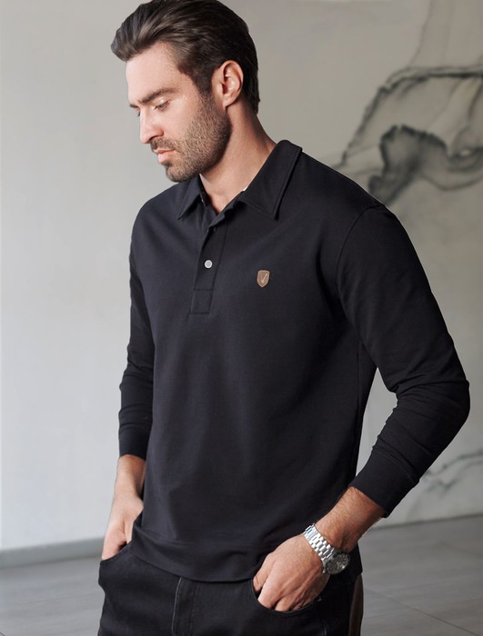 Состав: 95%Хлопок 5%ПУ Плотность: 240 Г/м2Стильный лонгслив черного цвета с воротником поло выполнен из премиального хлопка в сочетании с эластаном . Натуральная ткань обеспечивает легкость, воздухопроницаемость и приятные тактильные ощущения даже когда жарко, позволяет не перегреваться и поддерживает комфортный микроклимат в течение всего дня. Удобный отложной воротник на аккуратных пуговицах делает образ современным и стильным, а длинный рукав защищает руки при ветреной погоде. Поло хорошо садится по фигуре благодаря добавлению эластичных волокон — такой вариант подходит для мужчин любого роста и размеров, не стесняет движений и создает ощущение свободы и легкости.