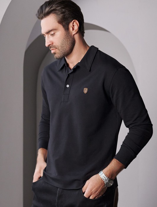 Заказать Лонгслив с воротником поло на пуговицах из премиального хлопка с эластаном