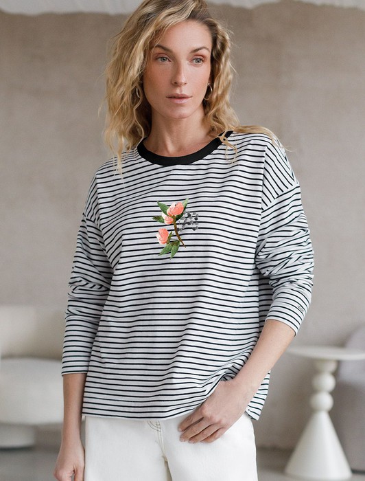 Лонгслив в полоску с принтом из премиального хлопка с эластаном