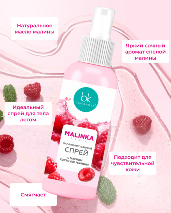 MALINKA line Спрей парфюмированный с маслом косточек малины, 100г.