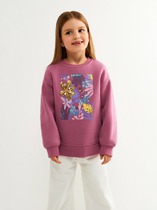По переду настрочен карман кенгуру. Пояс отрезной из рибаны, отстрочен.