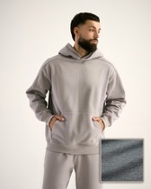 Мужское худи свободного силуэта из трикотажного футера с теплым подчесом. Круглая горловина с капюшоном, длинные рукава на манжетах, слегка спущенная линия плеча, пояс из рибаны – худи удачно сочетает комфортный дизайн и отличное качество!