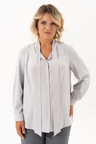 Блуза прилегающего силуэта на тонких бретелях. Бретели с регулировкой (на кольца и регуляторы пластик 10мм). Блуза на подкладке из основного полотна. На детали переда рельефы. Спинка со сборкой на эластичную тесьму по центральной детали спинки (внутр. 6мм).