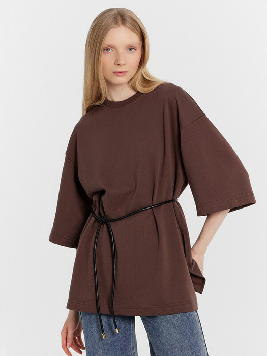 Плечо спущено, пройма углублена, рукав втачной удлиненный. По плечу и пройме проложены отделочные строчки. Джемпер удлинен, с разрезами в боковых швах.