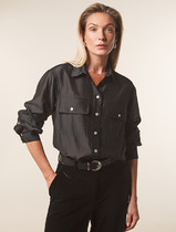 Блузка из текстильного хлопкового полотна. Блуза имеет прямой свободный силуэт, длину до линии бедер и фигурный низ. Линия плеча спущена – эта особенность кроя добавляет модели удобства. Вырез горловины – круглый, с рубашечным воротником. Рукава длиной до локтя. Застегивается на пуговицы. Спереди есть функциональный накладной карман. Рекомендуем!