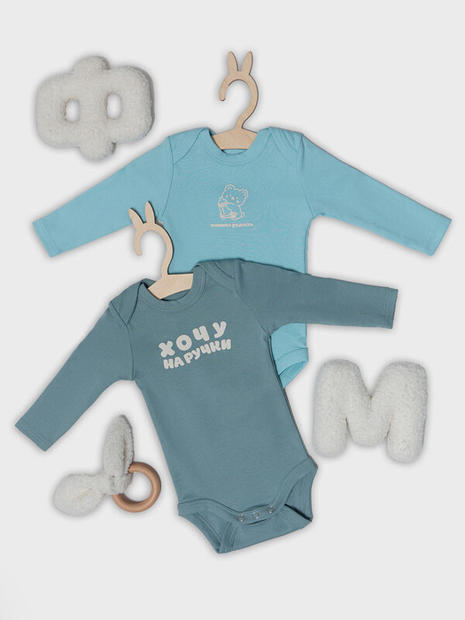 Совместные покупки Нижний Тагил Детская одежда Боди, ползунки и прочее — Mark Formelle БОДИ ДЕТСКОЕ (2ШТ.) 13016-2 13016-2 сланец +пыльная бирюза +печать