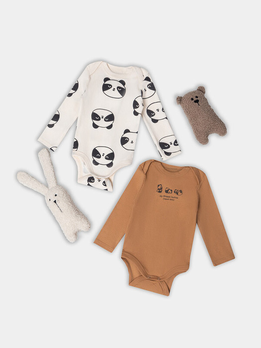 Совместные покупки Нижний Тагил Детская одежда Боди, ползунки и прочее — Mark Formelle БОДИ ДЕТСКОЕ (2ШТ.) 13018-2 13018-2 охра +панды на молочном 92392