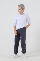 Брюки-джоггеры для мальчиков. Пояс отрезной с втачной эластичной тесьмой, внутри шнур. Пояс прострочен двумя отделочными строчками. По переду обработаны карманы с отрезным бочком. Низ брюк застрочен с эластичной тесьмой на двухигольной плоскошовной машине.
