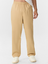 Брюки прямые, свободные. Пояс отрезной с эластичной тесьмой внутри. С внешней стороны пояса пробиты петли и втянут шнур (8КXW-1  8мм) с узлом на концах. В боковых швах обработаны карманы, подкладка кармана из основного полотна. На левой передней половинке проложена декоративная строчка - имитация гульфика. На задней правой половинке накладной карман. Нижние срезы брюк обработаны швом вподгибку с эластичной тесьмой внутри.