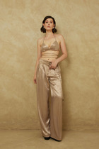 Женские свободные брюки идеально подходят для тех, кто ценит комфорт и стиль. Средняя посадка и боковые карманы обеспечивают удобство при носке, а эластичный пояс со шлевками, в которые втянут шнур в тон, добавляют функциональности и эстетичности изделию. Нижние срезы брюк аккуратно обработаны швом вподгибку, что придает изделию завершенность и аккуратность. Эти брюки легко сочетаются с различными элементами гардероба, создавая стильные и современные образы для любого случая. Добавьте их в свой гардероб и наслаждайтесь сочетанием комфорта и лаконичного дизайна каждый день.