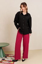 Брюки прямого силуэта. Посадка средняя. Пояс цельнокроеный с эластичной тесьмой внутри (вн. 20мм 20RV). С внутренней стороны пробиты петли и втянут шнур (хб тесьма 10мм) с застроченными концами. В боковых швах обработаны карманы. Подкладка карман из кулирки.