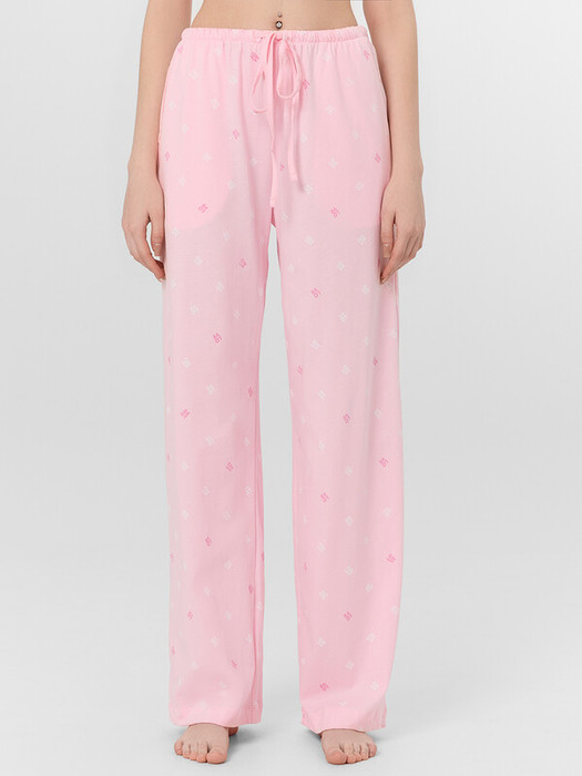 Домашние брюки с принтом — это уют и свобода в каждой детали. Высокая посадка и свободный силуэт из мягкого хлопкового трикотажа обеспечивают комфорт и полную свободу движений, идеально подходя для отдыха дома.