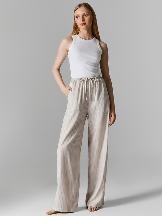 Классический дизайн в полоску и светлый цвет делают эти брюки универсальным элементом домашнего гардероба. Они легко комбинируются с различными топами, футболками или рубашками, позволяя создавать стильные и комфортные образы для расслабленных дней.