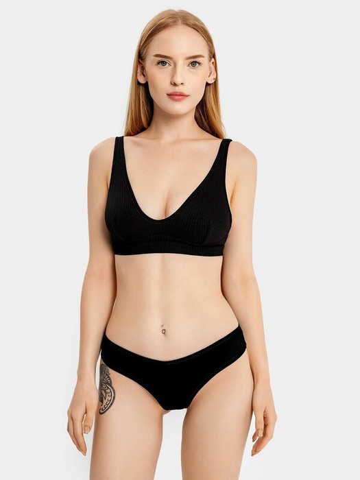 Бюстгальтер женский без каркасов с мягкими чашками, выполнен из вискозной рибаны. Чашки, ластовица и бочок на подкладке из рибаны.