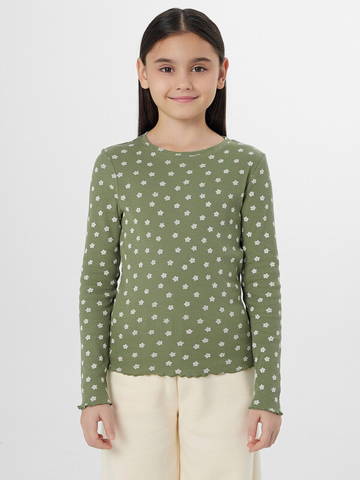 Джемпер для девочек с нежным цветочным принтом — элегантный вариант для школы и праздников. Прилегающий силуэт облегает фигуру, сохраняя свободу движений. Удобный круглый вырез и длинные рукава с фактурной резинкой добавляют модели аккуратный вид.