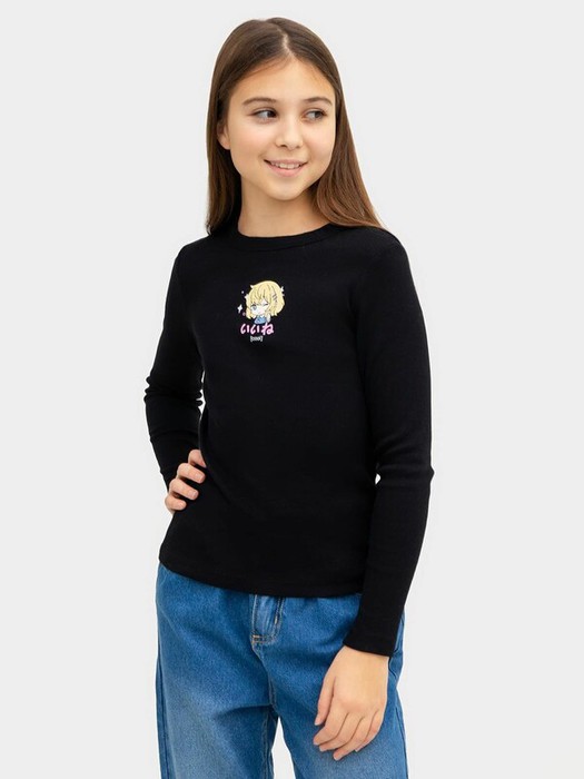 Джемпер прилегающего силуэта. Рукава длинные, втачные. Перед и спинка цельнокроенные. Горловина круглой формы окантована бейкой из рибаны. Низ рукавов и изделия обработаны на 2-х игольной плоскошовной машине швом в подгибку.