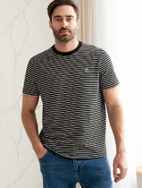 Нижние срезы футболки и рукавов обработаны швом вподгибку.