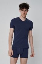 Футболка прямая свободная. Горловина округлой формы обработана обтачкой из рибаны. Шов втачивания обтачки по спинке закрыт бейкой из основного полотна. Линия плеча слегка спущена. Рукава втачные, корткие. Нижние срезы футболки и рукавов обработаны швом вподгибку на 2х шовной плоскошовной машине.