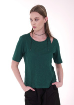 Нижние срезы футболки и рукавов обработаны швом вподгибку.