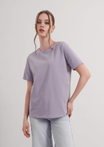 Футболка прямого силуэта из трикотажного полотна кулирка. Горловина круглой формы, широкая обтачка из рибаны.