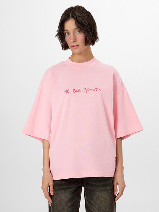 Футболка женская свободного силуэта из трикотажного кулирного пототна. Горловина круглой формы, с широкой обтачкой из рибаны. Плечо спущено, пройма углублена. Рукав втачной, длиной по локоть. Подгибка низа и рукавов широкая.