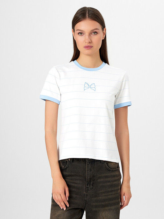 Mark Formelle ФУТБОЛКА ЖЕНСКАЯ 112936 112936 голубая полоска на белом 128854