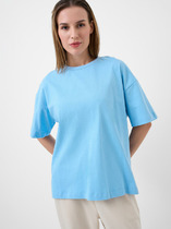 Эта женская удлиненная футболка оверсайз — стильное и комфортное решение для современного гардероба. Свободный силуэт дарит ощущение расслабленности и удобства, подчеркивая актуальный тренд на объем и легкость в образе. Модель выполнена из хлопковой кулирки — мягкого, воздухопроницаемого материала, который приятно ощущается на коже и обеспечивает комфорт в течение всего дня. Круглая горловина оформлена обтачкой из рибаны, что придает дополнительную эластичность и делает посадку комфортной. Спущенная линия плеча и углубленная пройма добавляют непринужденности в образ, создавая актуальный и расслабленный акцент. Широкие рукава длиной чуть выше локтя обеспечивают свободу движений и гармонично дополняют силуэт, делая модель идеальной для повседневного стиля. Эта футболка прекрасно сочетается с легинсами, джинсами, спортивными брюками и шортами, позволяя создавать стильные и удобные образы для любого случая. Универсальная и комфортная — идеальный выбор для тех, кто ценит стиль, свободу и удобство в одежде!
