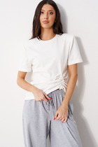 Женская футболка оверсайз станет отличным дополнением ваших стильных аутфитов. Изготовленная из высококачественной хлопковой кулирки, она обеспечивает комфорт и долговечность. Округлая горловина и короткие рукава создают классический и современный образ, а спущенная линия плеча добавляет непринужденности и свободного стиля. Модель легко сочетается с различными элементами гардероба, что позволяет создавать разнообразные стильные образы для любого случая. Преобразите свой гардероб с этой универсальной и стильной футболкой Mark Formelle.