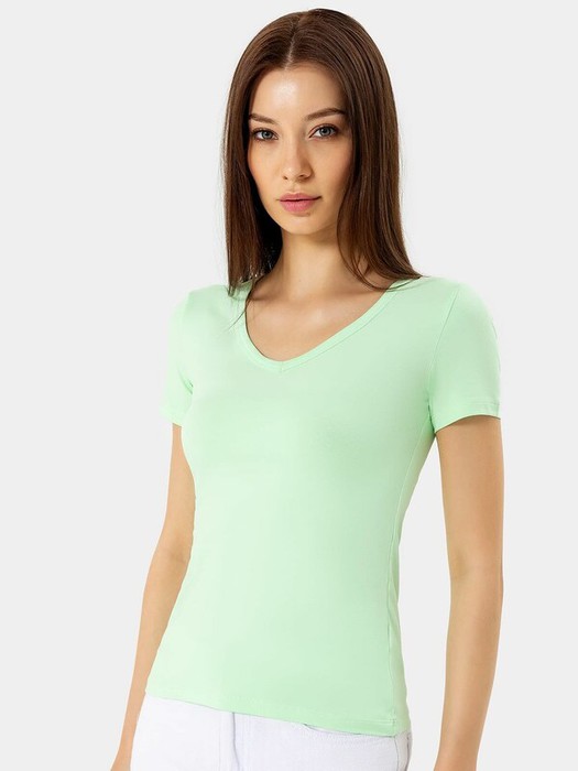 Спортивная футболка прилегающего силуэта. В составе полотна –  натуральный хлопок и немного эластана. Горловина скругленная и углубленная, рукава короткие. Отличный вариант футболки для спорта, домашних дел и прогулок!
