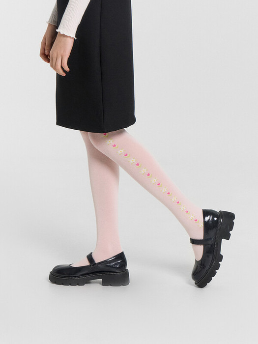 Рис.2956 Гладкие колготки с рисунком в виде цветочков в лампасе.