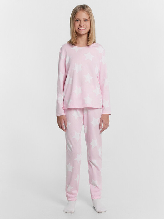 Уютный комплект для девочек из высококачественного хлопка. Модель состоит из джемпера и брюк. Горловина круглой формы. Рукава длинные. Брюки длинные, немного заужены к низу. Натуральное волокно в составе изделия отличается особой мягкостью и приятной на ощупь текстурой, бережно окутывая нежную детскую кожу. Ткань обладает превосходной гигроскопичностью, активно впитывая и отводя влагу, что помогает поддерживать оптимальный микроклимат и предотвращает перегрев. Конструкция пижамы продумана с учетом особенностей детской анатомии. Свободный, не стесняющий движений крой, эластичный пояс обеспечивают максимальную свободу и комфорт во время сна. Широкий размерный и цветовой ряд. Лучший выбор на любой сезон года!